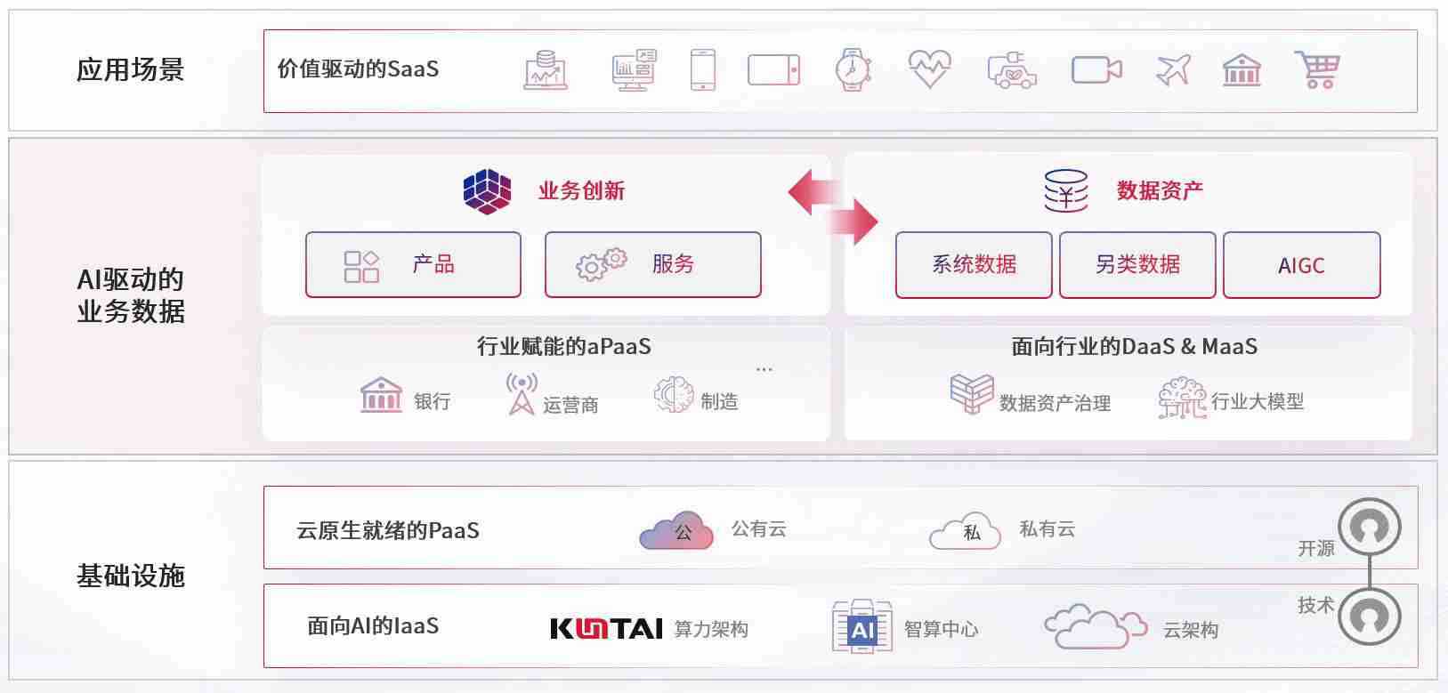 数字时代,,围绕企业数字化转型的关键要素,,欧赔数码开创性的提出数云融合战略和技术体系框架,,,着力在云原生、、、、数字原生、、、AI原生和信创产业上架构产品和服务能力,,,,为处在不同数字化转型阶段的快消零售、、、汽车、、、、金融、、、、医疗、、政企、、教育、、运营商等行业客户提供泛在的敏捷IT能力和融合的数据驱动能力,,,构建跨界融合创新的数字业务场景和新业务模式,,,助力企业级客户建立面向未来的核心能力和竞争优势,,,,全面推动社会的数字化、、智能化转型升级。。。。
