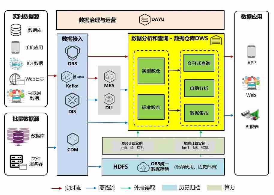 交通银行数据仓库(DWS)采用欧赔鲲泰R722服务器作为数据底座,,采用MPP(Massive Parallel Processing)架构,,,支持行存储与列存储,,提供PB(Petabyte,,,,2的50次方字节)级别数据量的处理能力。。。。
